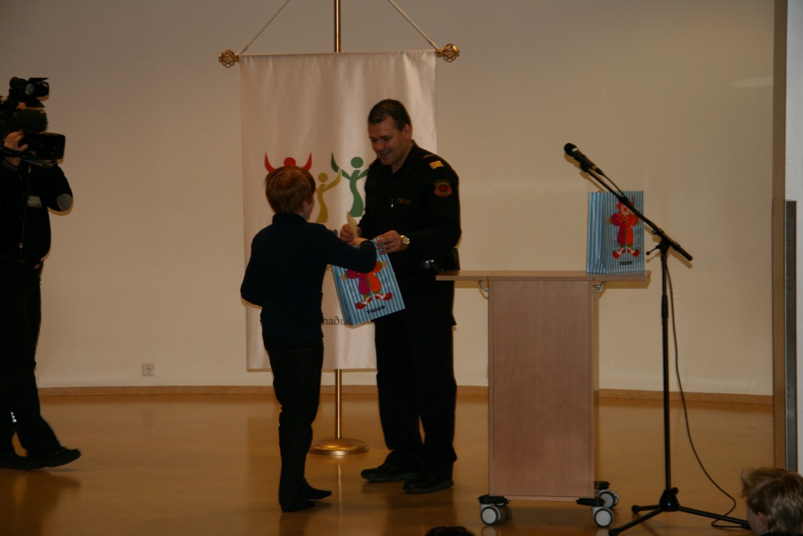 Tveir drengir í 3. bekk fengu viðurkenningu frá Brunavörnum Suðurnesja fyrir rétt leysta eldvarnagetraun. Það voru þeir Magnús Óli Friðriksson og Róbert William Georgsson sem fengu vegleg verðlaun m.a. Ipod Shuffle. Róbert William var því miður ekki á staðnum en vinkona hans Regína Krista Eyjólfsdóttir tók við verðlaununum fyrir hans hönd.