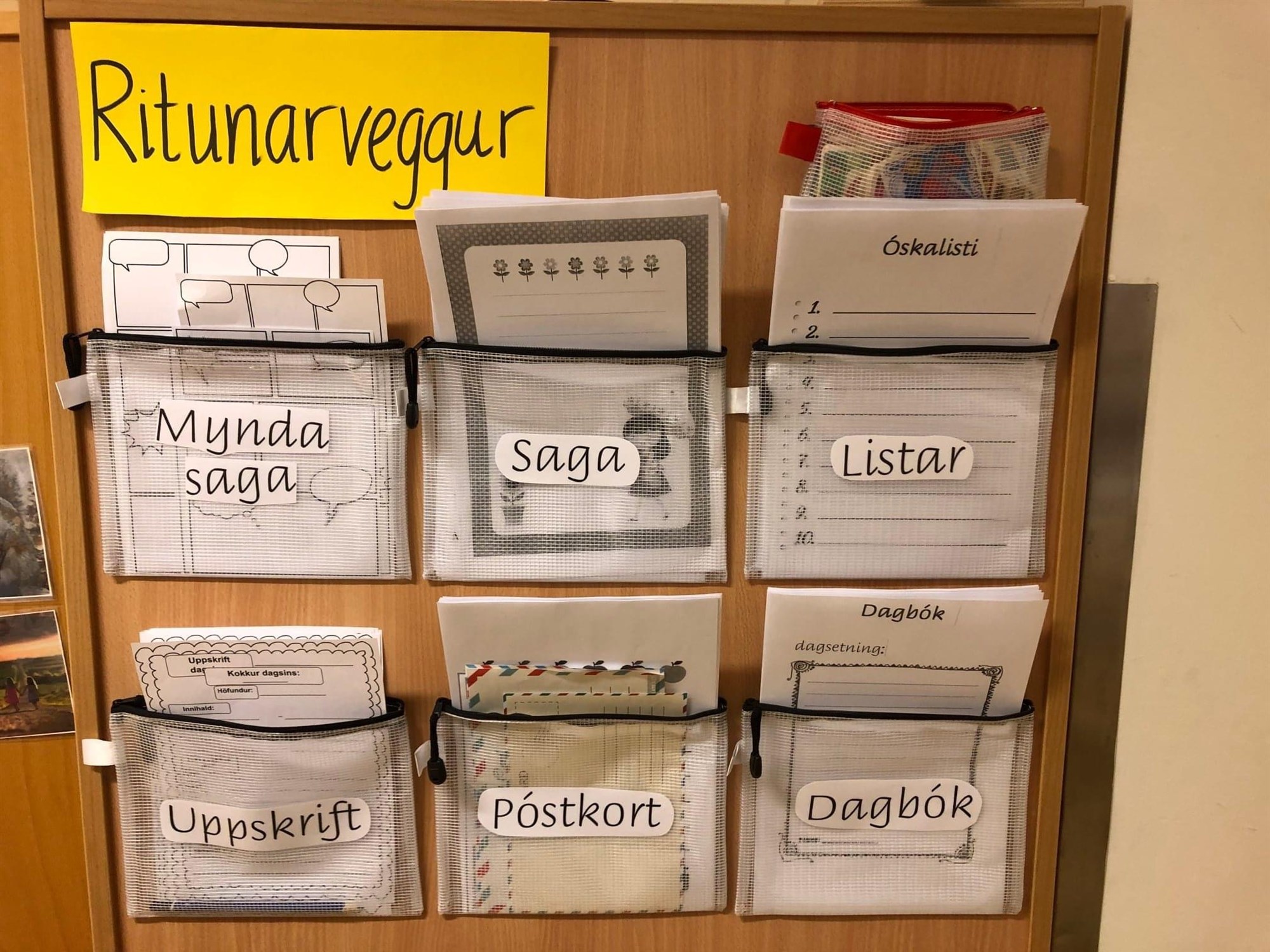 Ritunarveggirnir nýtast bæði í ritun tengdri gæðatexta en einnig ef nemendur vilja skrifa af eigin frumkvæði. Ritunarveggirnir eru aðlagaðir aldri og mjög fjölbreyttir. Gaman hefur verið að fylgjast með hvað ritunarveggirnir hafa gengið vel í skólanum okkar.