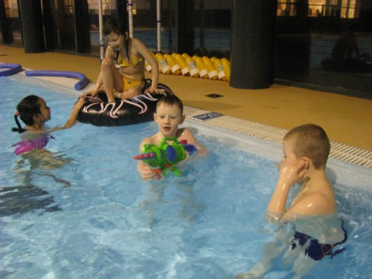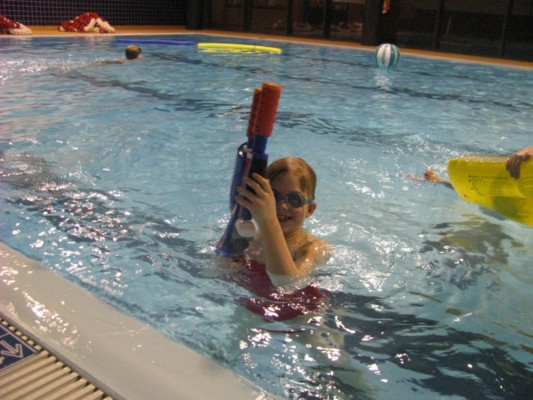 Þessa viku er allur skólinn í strandarsundi í sundtímum sínum. Eins og sjá á myndunum skemmta krakkarnir sér mjög vel.