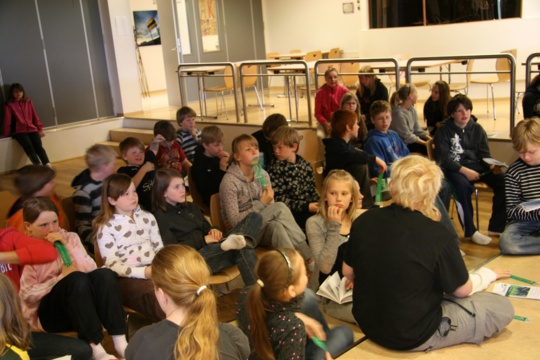 Á þriðjudag lásu börnin upp ljóð sem þau höfðu valið sér eða samið sjálf, á miðvikudag lásu þau upp frumsamda sögu um skróp og í dag, fimmtudag, sögðum við eða lásum upp brandara og skemmtum okkur konunglega í leiðinni.